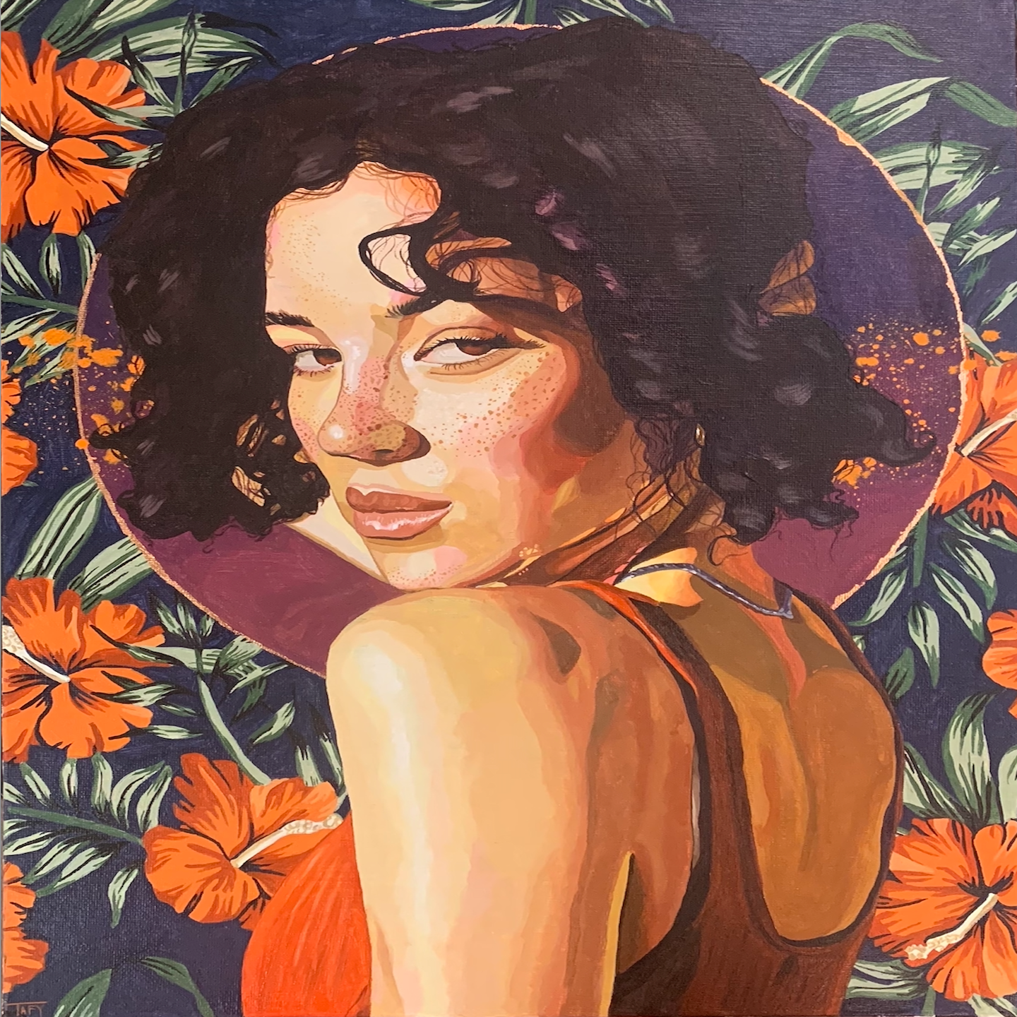 Her vibrant and expressive portraits are deeply rooted in celebrating individuality and cultural identity. Her work employs striking, saturated colors with dynamic and engaging compositions. Tafy seamlessly blends cultural patterns and symbols into her compositions, enriching the artwork's narrative quality.